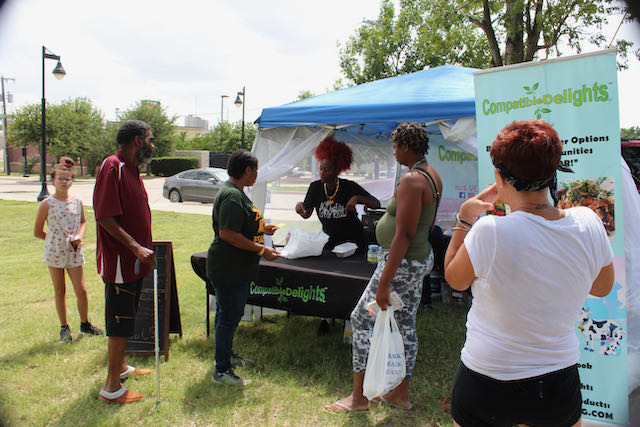 Guests ordering and picking up their meals from vegan restaurant Compatible Delights.